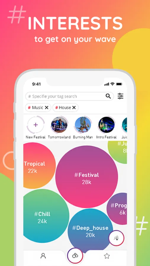 - Explore neue und außergewöhnliche Interessen und Kombinationen über die Bubbles und sieh wer diese teilt.