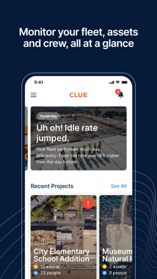 Clue is the only solution to digitize, connect and optimize your entire construction operation: assets, crew and job sites, in one place - helping you save money, save time, and save the planet.