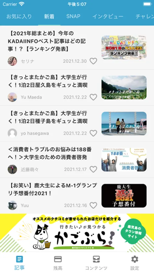 KADAI INFO内で作成される鹿児島のお出かけ、グルメ、お得情報などの記事がカテゴリごとに簡単に見ることができます。
