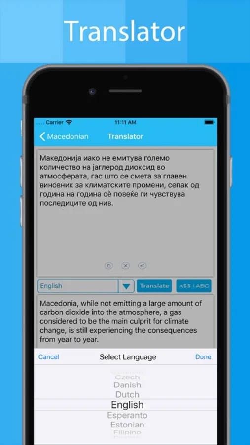 Macedonian Translator app will allow you to translate message, story and you can share translated text to your friends and family bye Facebook, twitter and emails.