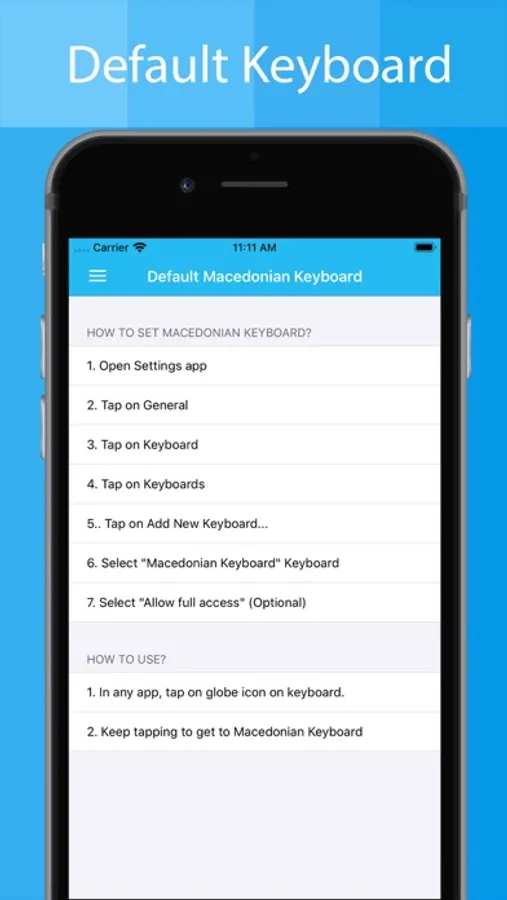 * With the help of Macedonian Keyboard Extension you can write in Macedonian language in any application. You have add the Macedonian Keyboard Extension from your phone settings.