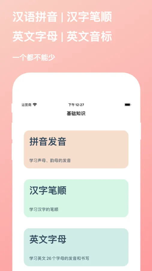 - 学习26个英文字母的发音,支持跟读和测试模式