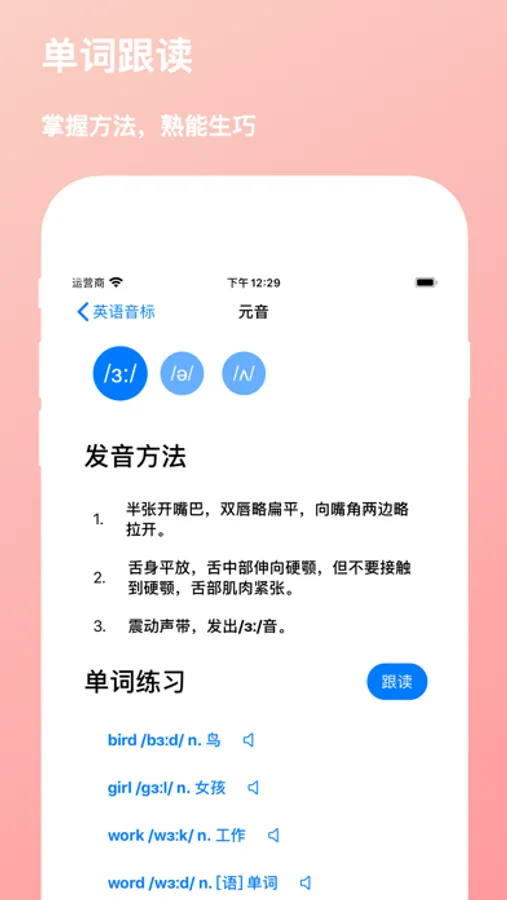 - 音标对应示例单词跟读