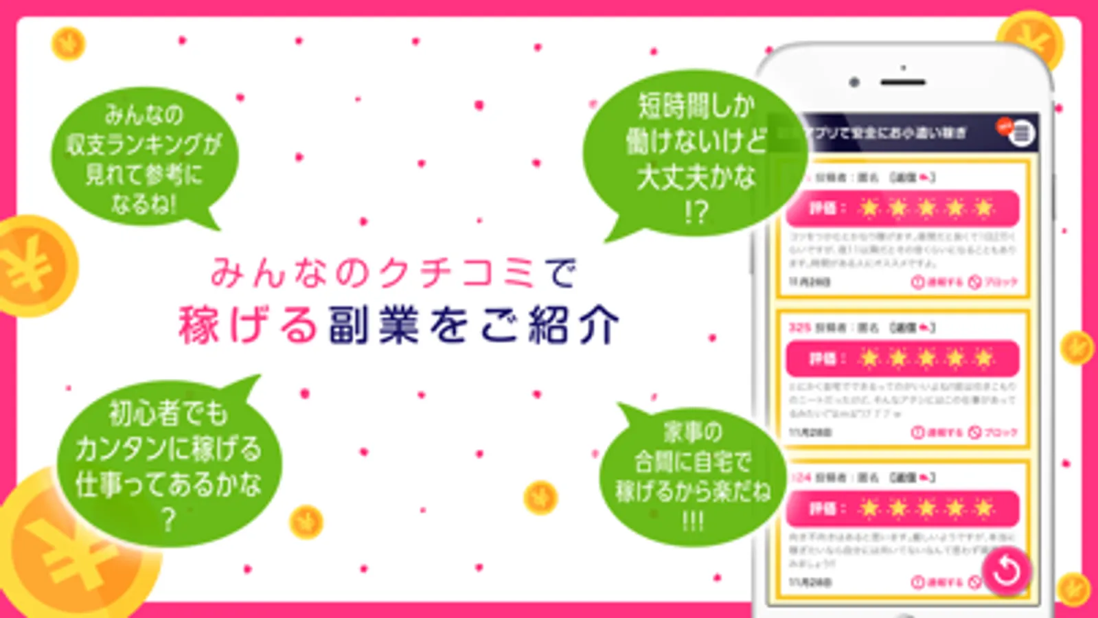 いくらオススメのお仕事でも試す前は不安ですよね。そこで便利なのがみんなのクチコミ情報。先に利用している人の意見を参考にしてみてください!