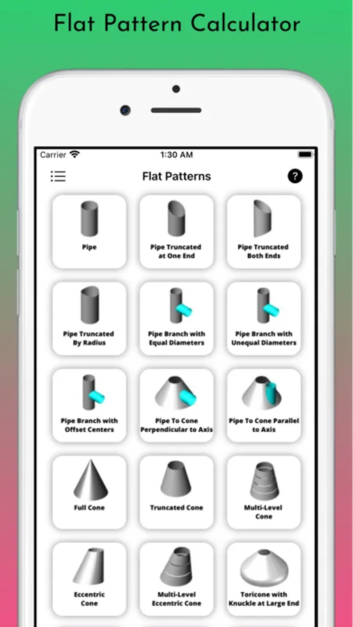 Flat Pattern Calculator is Tool for All Types of Widely used fabrication shapes Such as Pipe, Truncated Pipes, Pipe Branch Connections, Pipe to Cone Intersections, Cone, Truncated Cone, Eccentric Cone, Tori Cone, Multi-Level Cone, Square to Round, Rectangular to Round, Round to Square, Round to Rectangular, Pyramid, Truncated Pyramids, Sphere, Dish ends, Miter bend, Fabricated Bend, Cut Bend, Screw Flight etc.