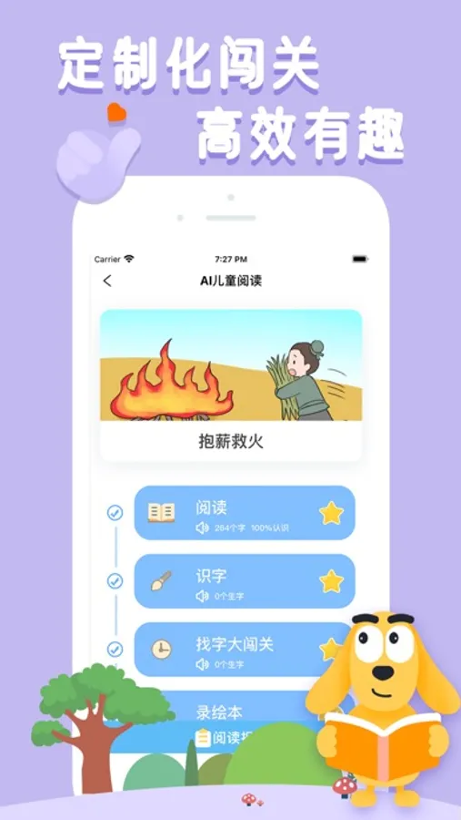 1. 产品核心AI技术实现精准测字,根据用户识字量智能推送合适绘本