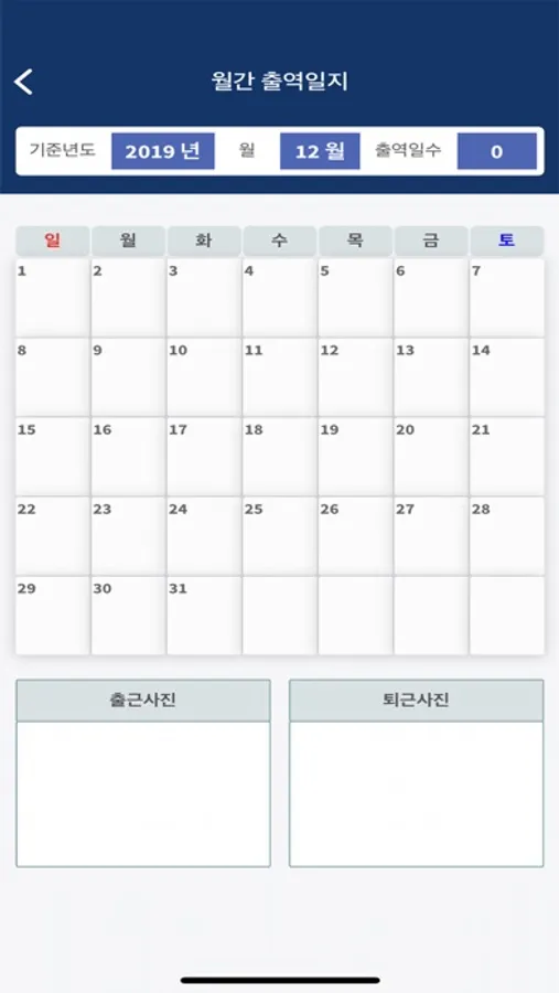 본인의 월간 근무내역을 캘린더 형식을 통해 확인 할 수 있습니다.