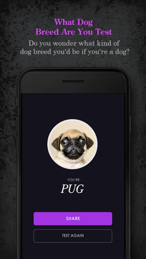 Are you curious about which dog breed and animal suits your characteristics the most? Are you curious about your biggest strength? Try this app and find out. Have fun! Hope you enjoy it and don't forget to share with your friends and compare their suited dog breeds.