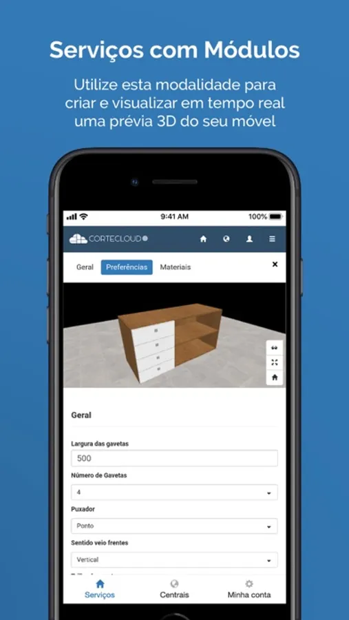A maior plataforma de terceirização de serviços em movelaria do mundo cabe no seu bolso! Conheça o Cortecloud: sua nova ferramenta de trabalho, que ajuda você a produzir e gerenciar serviços de corte, borda e furação, e otimiza a rotina do seu negócio, trazendo mais praticidade e organização para sua produção e venda de móveis planejados.