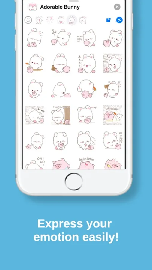 ● Set of 120 high quality animated stickers of cute Adorable Bunny!