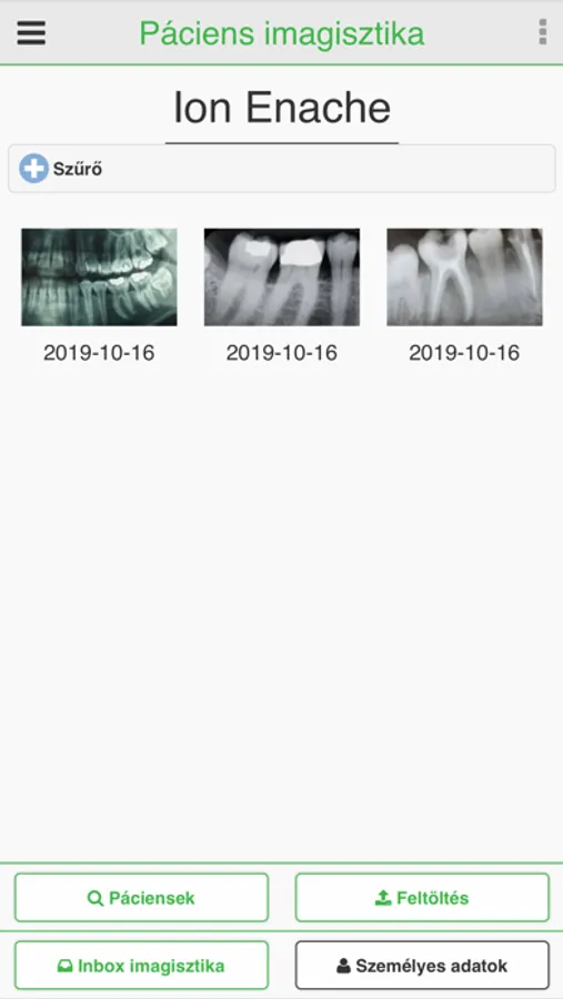 Aplicatia permite medicului sa aiba o baza de date proprie cu toate imaginile pacientului, organizate pe baza numelui, a datei cand s-a facut investigatia sau a tipului de investigatie efectuata.