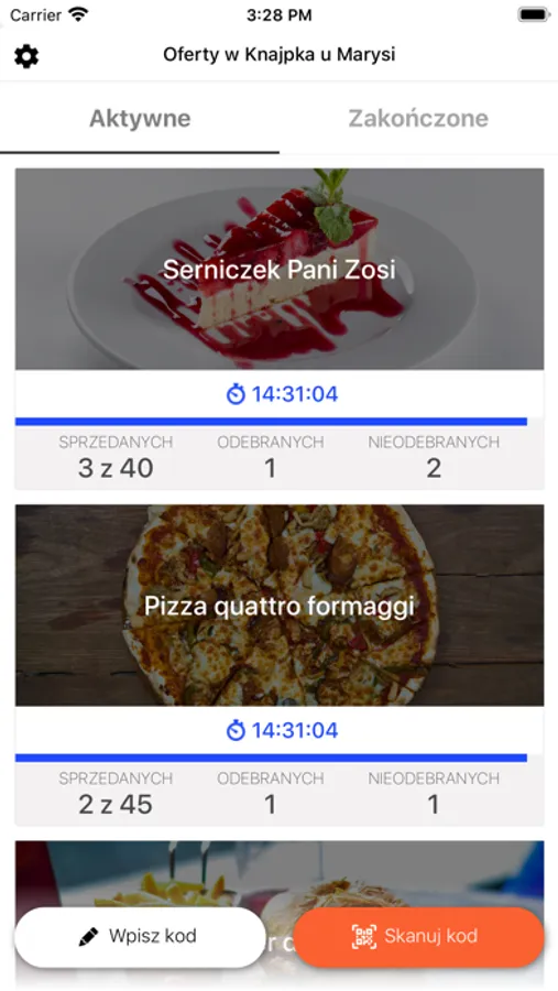 Wystarczy zeskanować kod pokazany przez Klienta lub wprowadzić go przy użyciu klawiatury, potwierdzić... i już. Klient może się cieszyć zamówionym przez niego posiłkiem.
