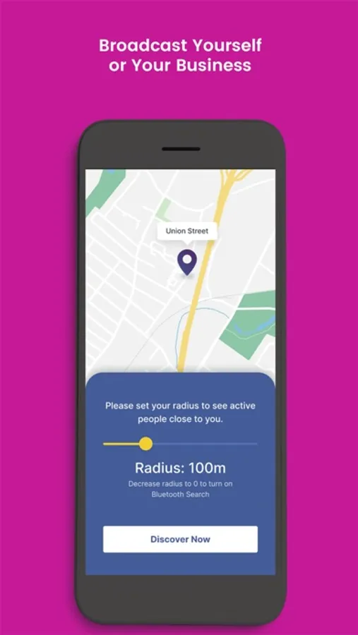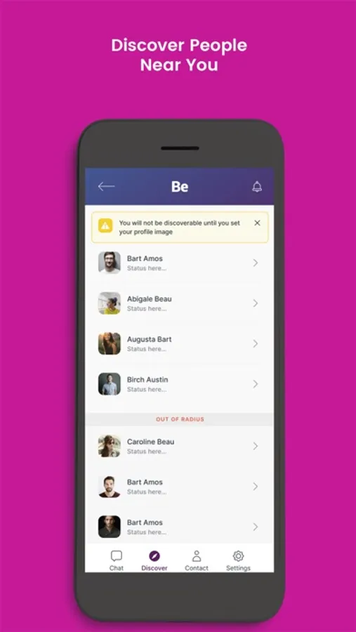 BeDiscoverable App, BeApp, or simply Be, allows you to see social media accounts of the people, products, and places in your immediate vicinity (the persons closest to you appear top of the list, grey accounts further down the list are outside your set discovery radius).