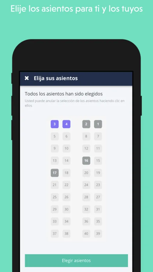 • Así mismo tu escogerás los asientos deseados para tu viaje.