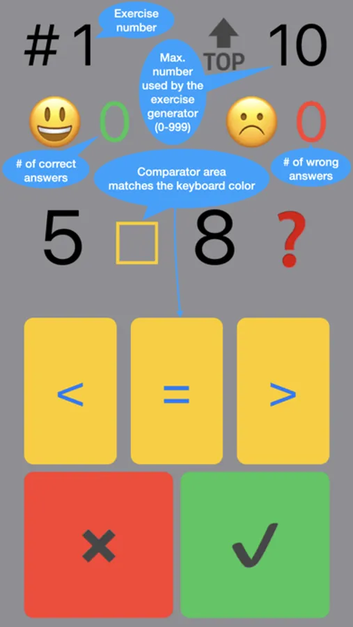 My First Math - Compare numbers - is simple, clean and easy to use application for practicing of comparing numbers for first grade students and everyone, who would like to tease their brain with a little bit of basic math. It complements the rest of the My First Math application series.