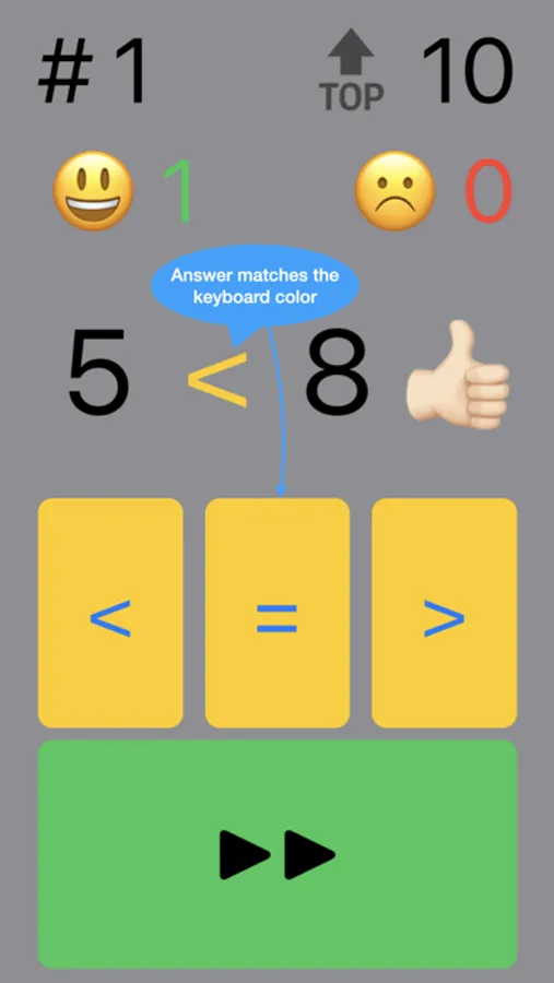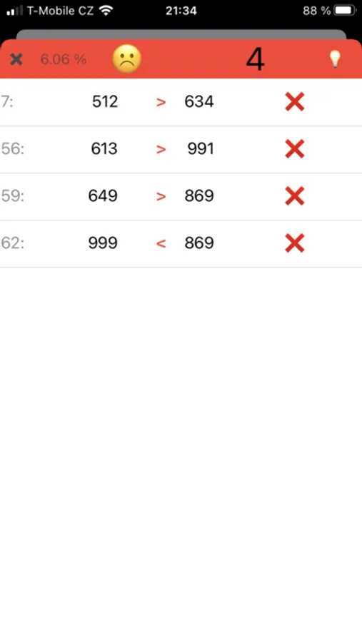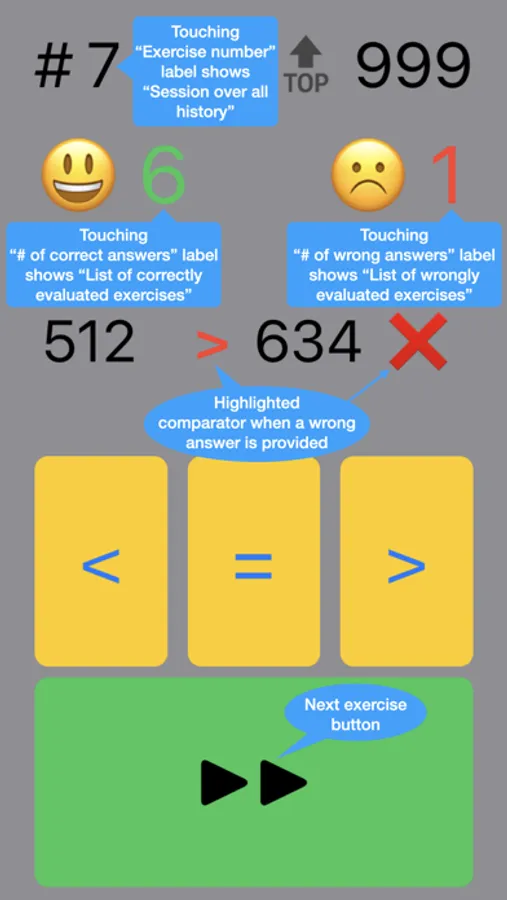 — When the answer is wrong, the comparator sign is highlighted, which helps the student recognize the situation and improve the focus.