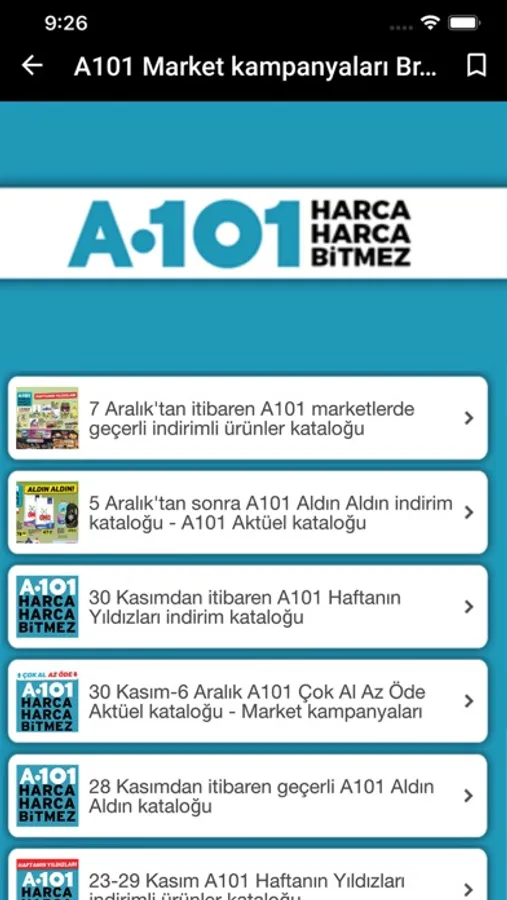 A101 Aktüel Ürünler Kataloğu ayrıca A101 market indirim broşürleri ve A101 market kampanyalarını günlük,haftalık,aylık olarak görebilirsiniz. Ücretsiz ve İnternet paketinizden çok az veri harcar.