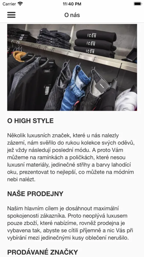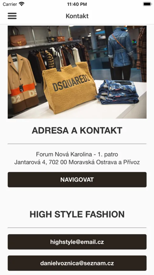 Aplikace HighStyle Fashion obsahuje důležité informace o Ostravském prodejci luxusní módy. V aplikaci naleznete veškeré informace o společnosti, o naších prodejnách a značkách, které prodáváme. V aplikaci nechybí ani kontakty, galerie a odkazy na sociální sítě.