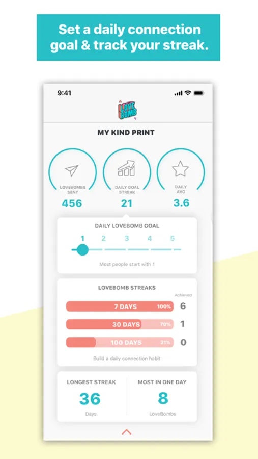-Send your 1st LoveBomb and see how many days in a row you can make a friend smile