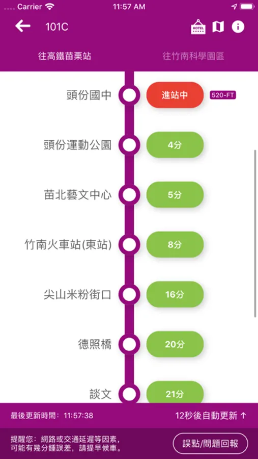 即時動態-公車到站時間即時顯示自動更新!