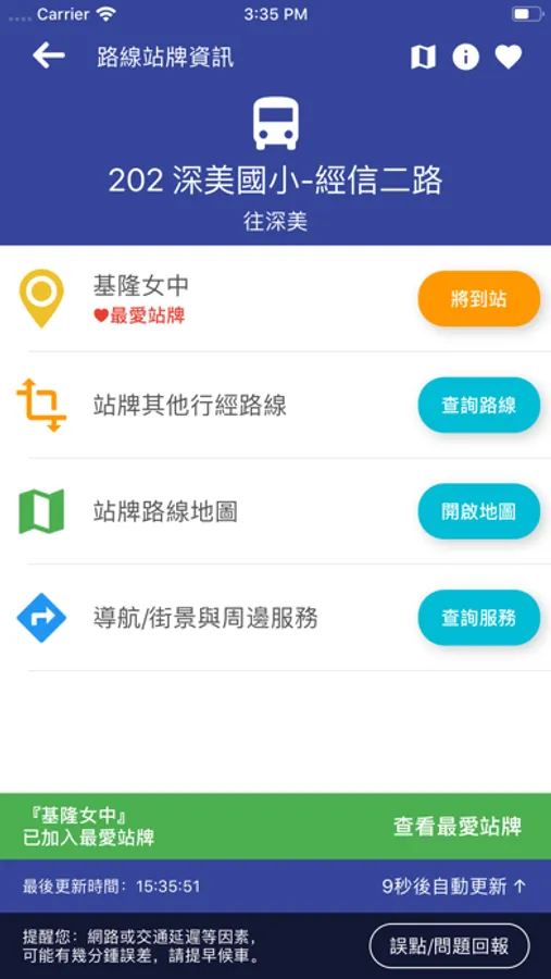 最愛站牌-常搭站牌收藏下次查詢省時快速!