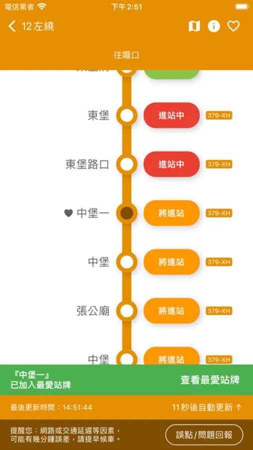 最愛站牌 - 常搭站牌加入最愛下次查詢省時快速!