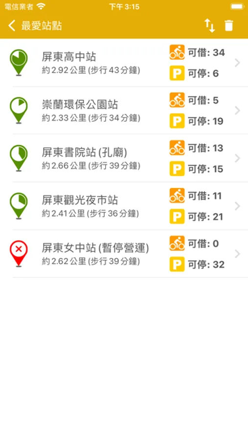 附近站點 - 快速找到附近可租借與還車站點列表!