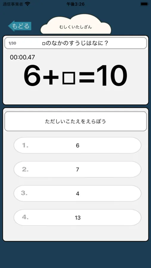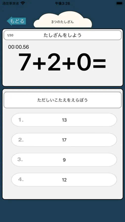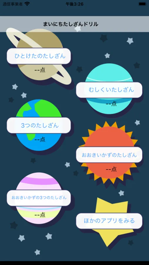 5種類のタイプの足し算をランダムで出題するアプリです。