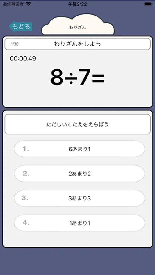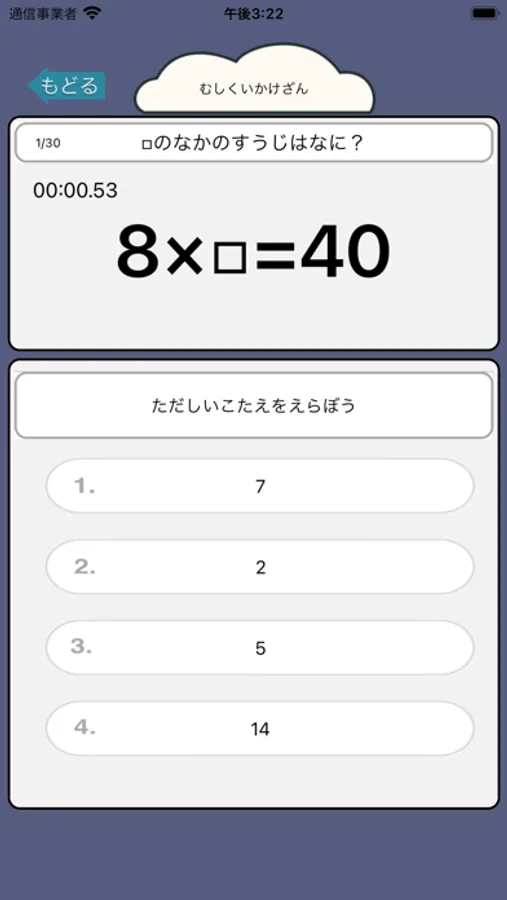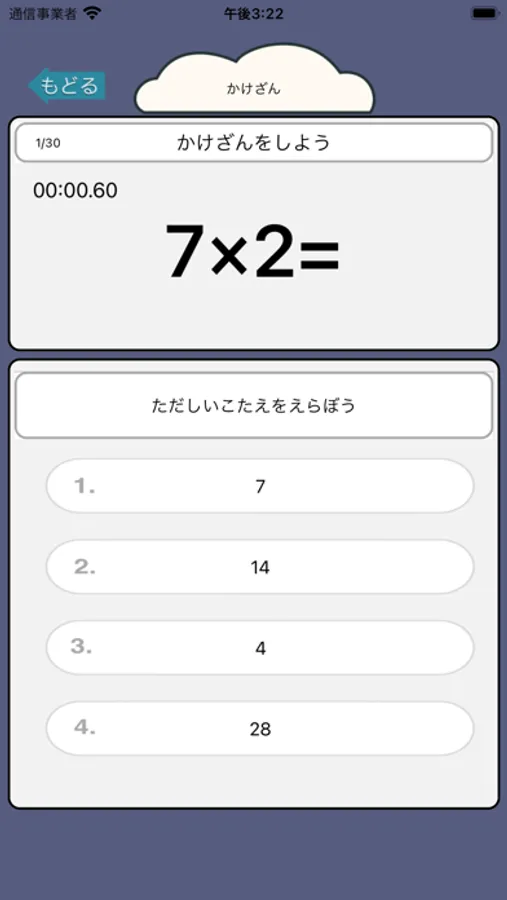 小学1年生のための算数学習アプリです。4種類のタイプでかけ算・わり算をランダムで出題するアプリです。