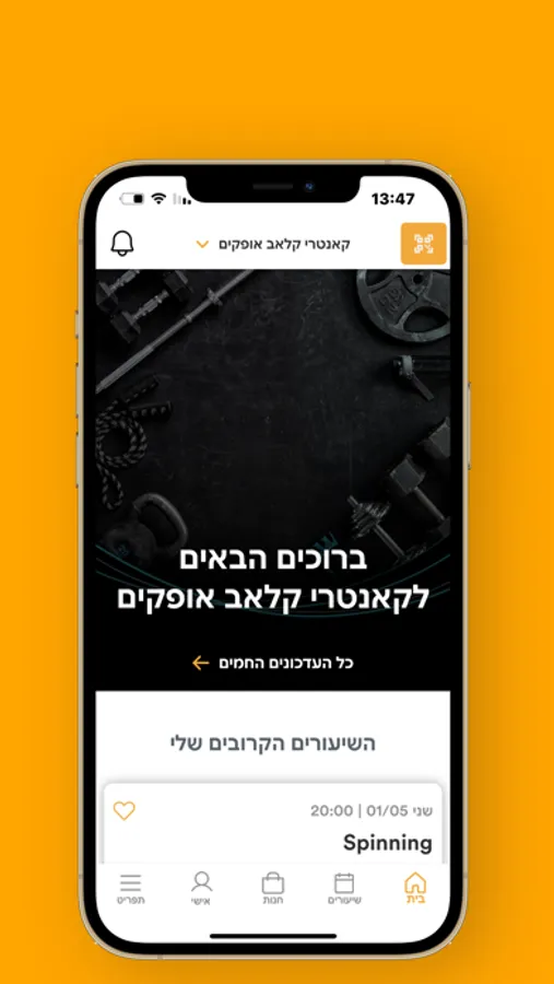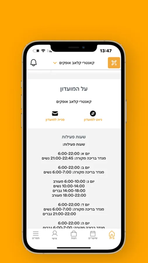 הרשמה לשיעורים (כושר, פילאטיס, סטודיו, חוגים...), תזכורות לאימונים ביומן, מצב המנוי,