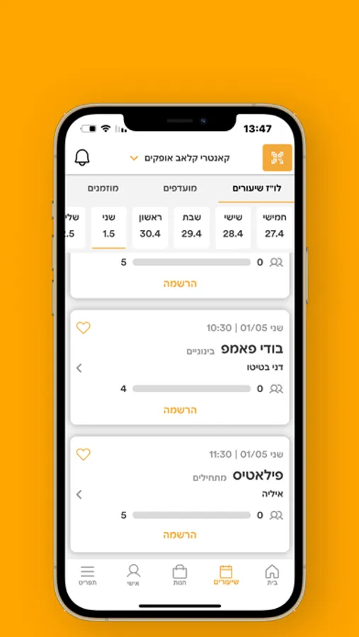 כל מה שצריך לרישום מראש לשיעורי סטודיו, פילאטיס, מחול, כושר ועוד.