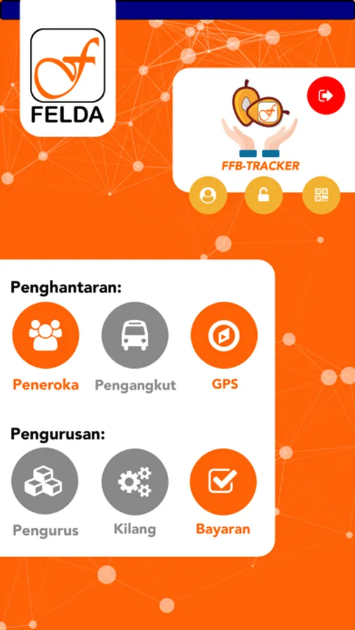 FFB-TRACKER adalah ekosistem yang terdiri daripada aplikasi mudah alih untuk penjejakan aset dan sistem pengurusan aktiviti yang dapat mengesan pergerakan Penghantaran Buah Segar dan statusnya dalam masa sebenar.