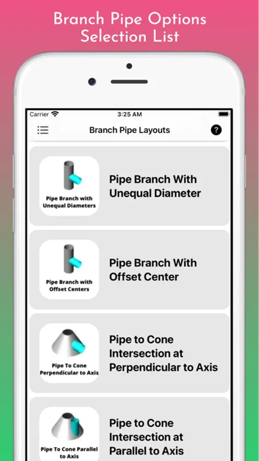 Branch Pipe Layout App build to Get Flat Pattern Layout or Fabrication Layout for Plain Pipe or Shell, Pipe to Pipe Intersection at 90 Deg with Equal Diameter, Pipe to Pipe Intersection at 90 Deg. with unequal Diameter with offset distance, Pipe or Nozzle to Cone Intersection at 90 Deg or Pipe or Nozzle to Cone Intersection with Parallel Axis.