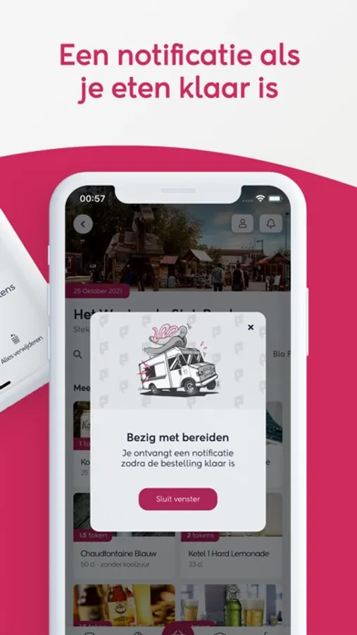 Wachten op je pizza, hamburger of andere "foodtruck items" kan op de dansvloer. Je krijgt een notificatie wanneer jouw bestelling klaar.