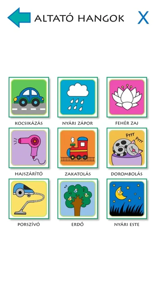 Amíg a baba csupán néhány napos, hetes vagy hónapos, addig sokszor elég egy megnyugtató duruzsolás, ismerős zúgás, amitől könnyen álomba szenderül. A pöttöm emberkék szülei az appal hozzáférhetnek a babák körében legnépszerűbb hangokhoz, így a kocsikázás, a nyári zápor, a hajszárító, a vonat, a dorombolás, a porszívó, a madárcsivitelős erdő és a békés nyári este tücsökciripelős hangjához, valamint a fehér zajhoz, amely a tapasztalatok alapján sok babánál a leghatékonyabb. Az applikáció lehetővé teszi, hogy a hang lejátszása alatt a szülő egyéb programokat is tudjon a telefonján használni.