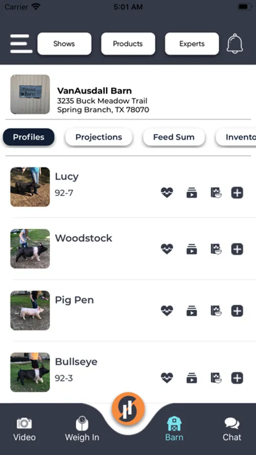 ShowHub provides an intuitive application that includes a social networking platform, that allows users to manage their show animals and serve as a central location for each animal’s historical profile. The platform will store video and photos to accompany each animal’s weigh-in, current feed ration & health history, to be exported/shared with coaches, breeders, and ag teachers/extension agents. Coaches/Breeders will be able to more effectively communicate within the application with their customers/students/exhibitors through CoachHub. Animal feeding will be monitored through an internal system that measures food type, purchased quantity and animal intake; against feed-on-hand to notify the user when they need to re-order. Available livestock shows and jackpots will be displayed in a section that includes entry guidelines, dates, locations, and weight breaks.