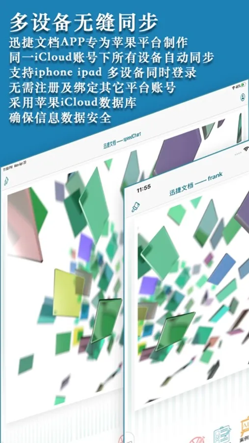 使用苹果自家iCloud的数据库,无须注册绑定账号,确保个人数据及信息安全。同一iCloud账户下多设备无缝同步。
