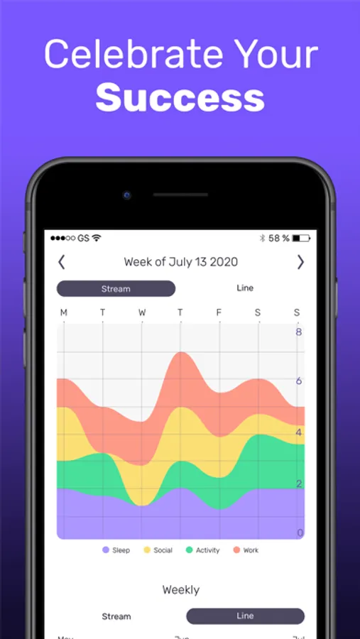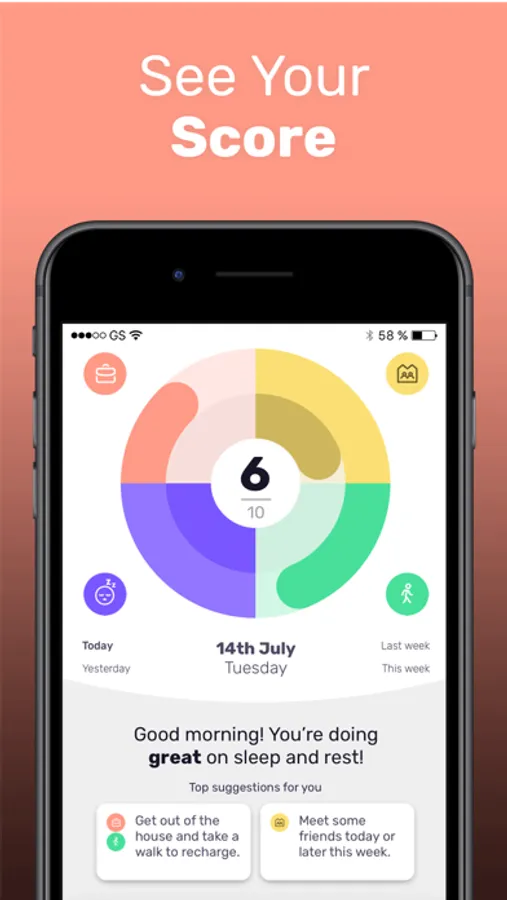 Track how you are doing in four key parts of your life: Social life, Activity, Work balance, and Sleep.