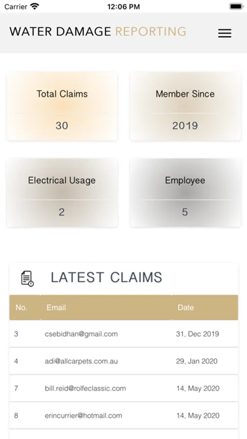 Gway Water Damage Reporting App included claim management, employee management and electric usages management system.