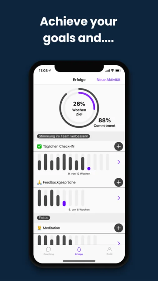 No one to coach? No problem, just send us an email and we will support you in your search. You don't need a coach? Then simply use the Habit Tracker (goal and activity system) and the journaling function to record and visualize your successes.