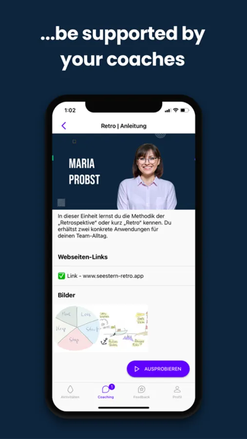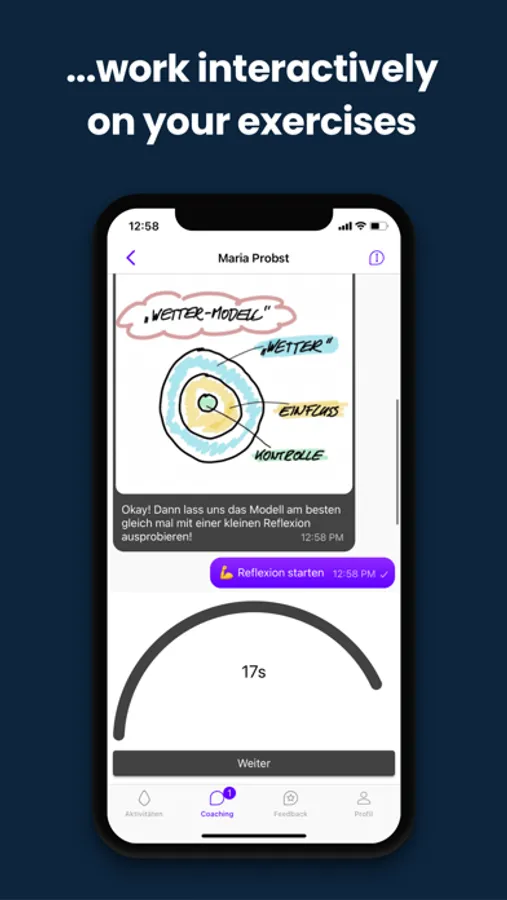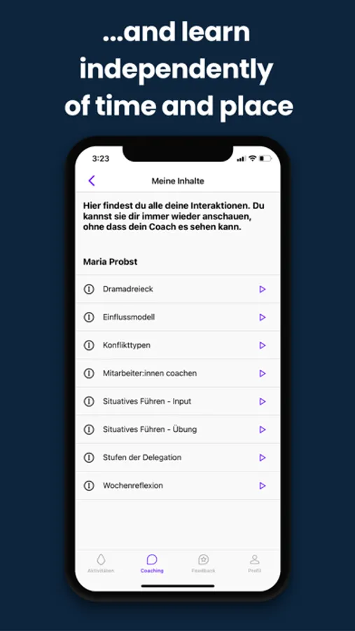 The BeCoach app offers you the possibility to connect with your coach, trainer or another consulting person so that they can assist you in your individual process. This person can support you via chat or with learning units, exercises and other formats in the app and help you to achieve your personal learning success.