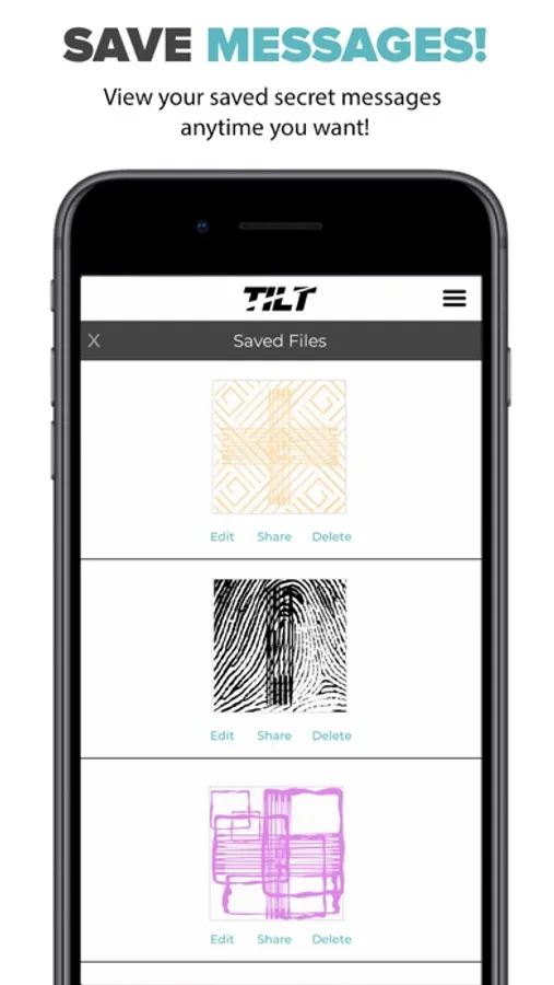 TILT is the first app that lets you create images that display hidden secret messages from what appears to be randomly scribbled images that can be easily shared with your friends!