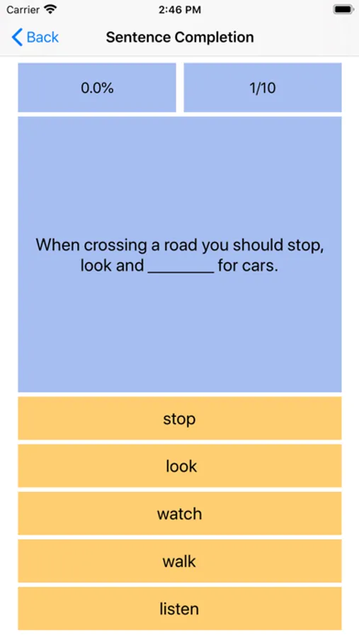 We present a quiz from a bank of questions stored in the app. You get a score and the number right/wrong as well as indication of correct answers then tapped. We've got a user profile that tracks your lifetime stats.