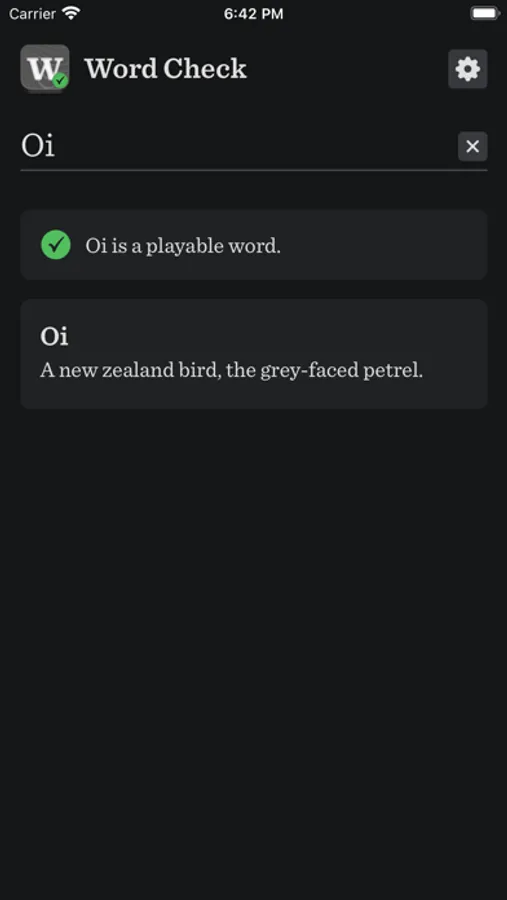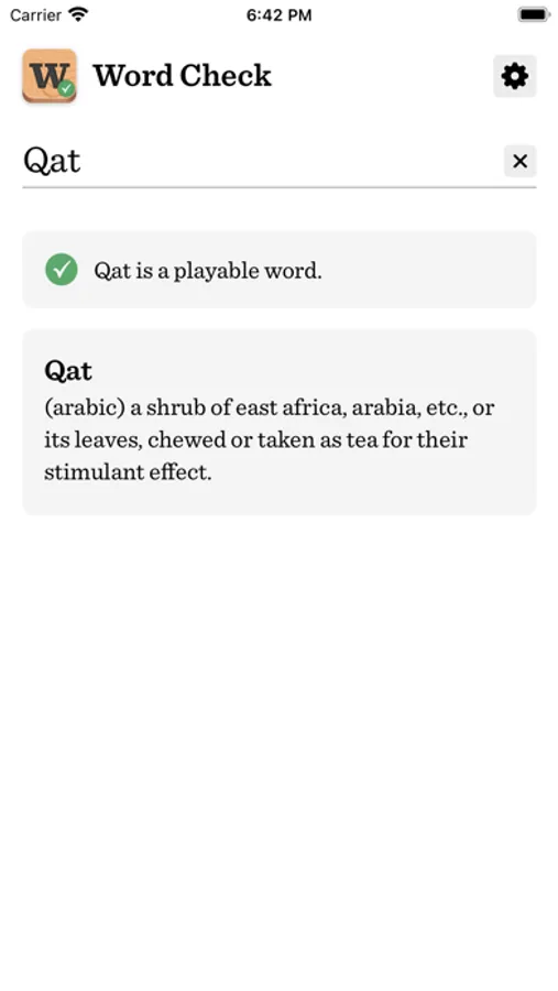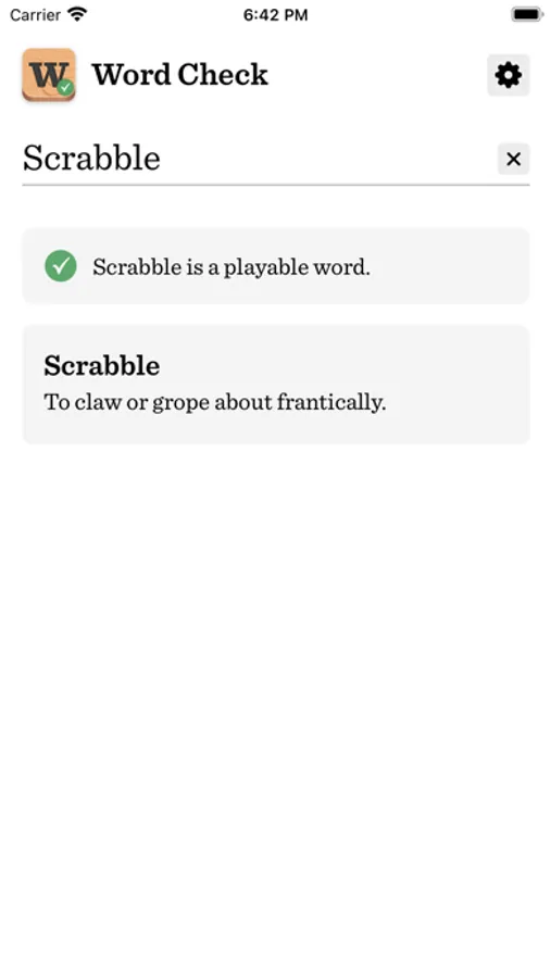 Word Check for SCRABBLE® provides a simple and clean interface to determine if a word is playable or not. It avoids showing related words or other suggestions so that you can show your opponent the result without giving them hints.