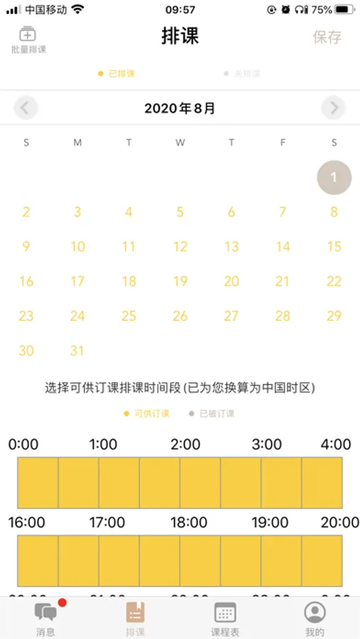 约课App分为学生版和私教版,此版本展示为私教版,可完成私教排课,发布公开课,查看课表等功能。