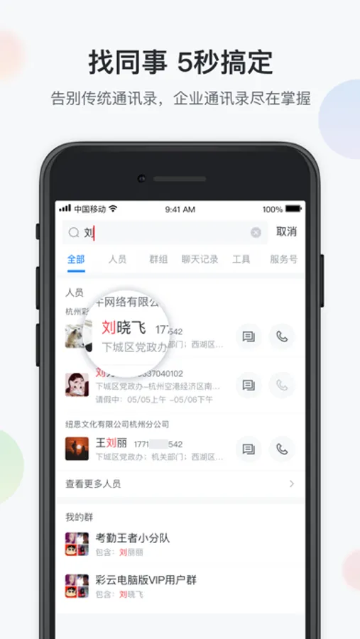 【云通讯录】全面整合企业/个人/好友的通讯录,完整组织架构,找同事只需要5秒。