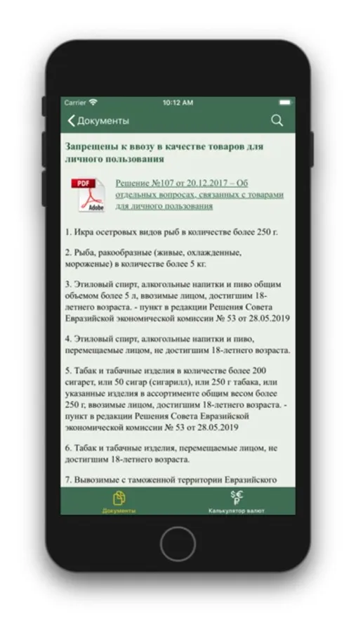 Мобильное приложение для информирования физических лиц о правилах перемещения через таможенную границу ЕАЭС