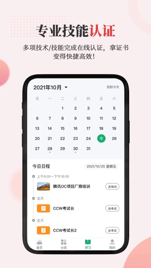 3.资质认证:该平台可实现技能类岗位的阳光资质认证,通过学习+考试等方式,进行在线认证,快捷高效。