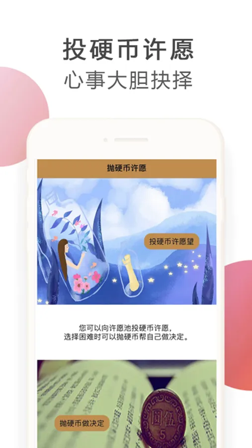 ●在生活中遇到难以抉择的事情,请在这里投一个硬币,让许愿池告诉你一个答案,大胆的向前踏出一步吧!