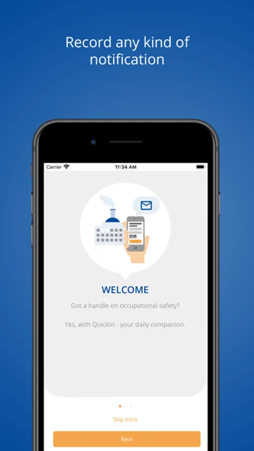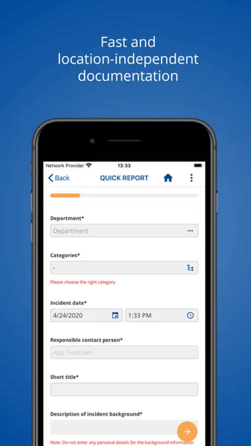 in a flash directly at the scene of the event. Why wait and waste valuable time? Your mobile device and QuickIn facilitate seamless and hassle-free communication, making sure that all parties involved are immediately informed. Notifications can cover all sorts of topics relevant to your business: quality-related messages, incidents, accidents, near misses, progress reports, defects or environmental incidents.